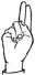 На ћирилици написано ШАЛЕ ПЕШИЋ састоји се из 9 слова [?]. Исписано ћириличном једноручном азбуком за глувонеме: